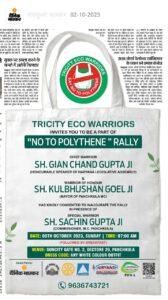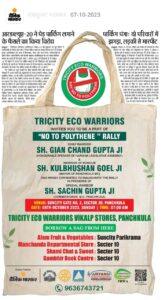 “Charity begins at home” so goes a famous saying. True to this spirit, a group of socially conscious residents of Suncity Parikrama society, Panchkula, led by Mrs. Pooja Aggarwal, realized that the growing menace of Plastic Pollution, specifically ‘single use polythene’ has reached gigantic proportions. They recognized that if this plastic pollution is not checked on war footing basis, it will push already sick Mother Earth to its untimely death. With a Vision of getting rid from the slavery of this self-inflicted agony of plastic pollution, a campaign in right earnest was started on 22nd March 2023, the start of Hindu Nav Varsh….