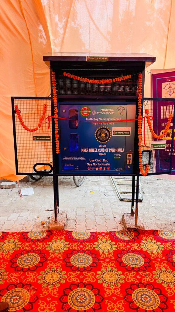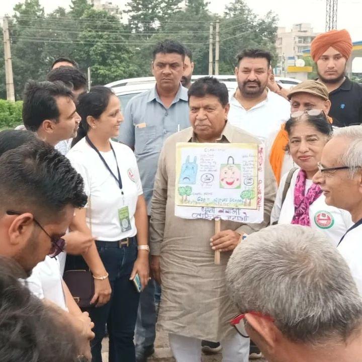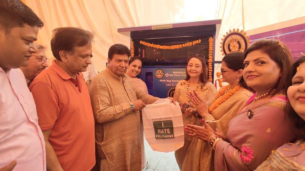 2. Conveying Message through Leaders: Honorable Sh. Manohar Lal Khattar, stands with us, as we shine a spotlight on our impactful campaign ‘Say No to Polythene’ during the vibrant Rahgiri program at Sector 5, Panchkula and also at Cloth Bag ATM inauguration at Sector-20, Panchkula Mandi. In pictures below we have Sh. Gian Chand Gupta, Honorable Speaker of Haryana Legislative Assembly, lauding the team’s invaluable contributions, witnessing the impactful efforts in driving the tricity towards a polythene-free transformation.